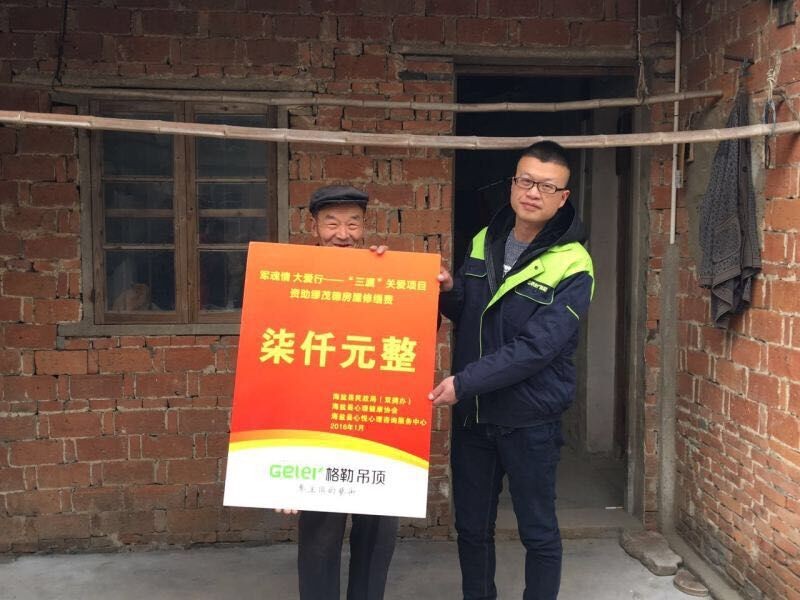 尊老敬老爱老是中华民族的传统美德,也是全社会共同的责任,1月21日下午,格勒集成吊顶联合县民政局为海盐县秦山镇缪老人送去爱心全屋吊顶,让老人在寒冷的冬日感受到社会的温暖,格勒集成吊顶为老人带去了7000元的房屋修缮款,这样的关心慰问让老人脸上洋溢着幸福的微笑。