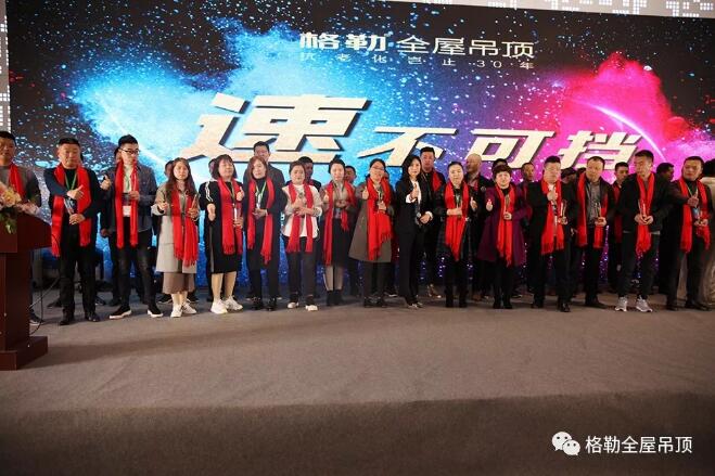 本次经销商大会,还将全新发布格勒2019年全新产品,格勒营销战略伙伴--目思营销策划有限公司总经理陈总为在场家人发布2019春季新品,助推格勒经销商扩充产品线,以及扩大符合更多渠道的大众消费产品,继续深耕吊顶市场。