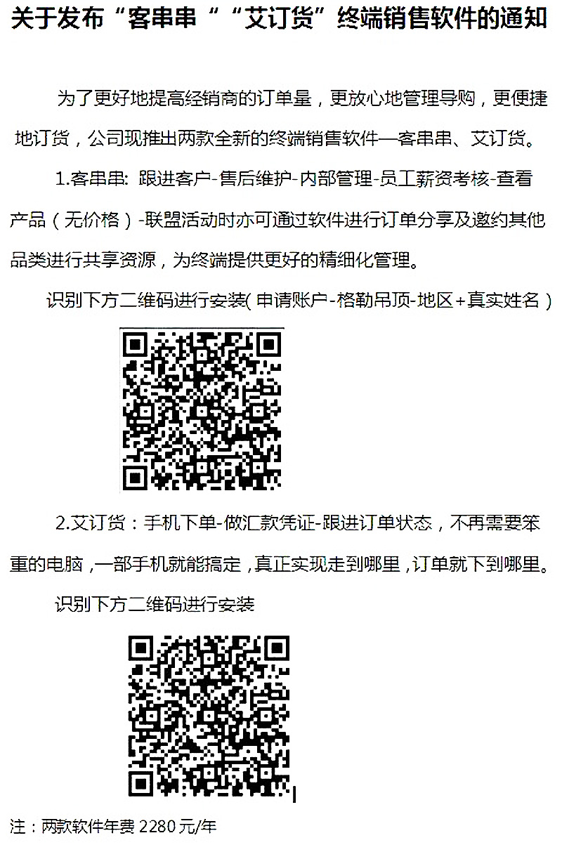 祝贺格勒全屋吊顶开发经销商门店导购软件