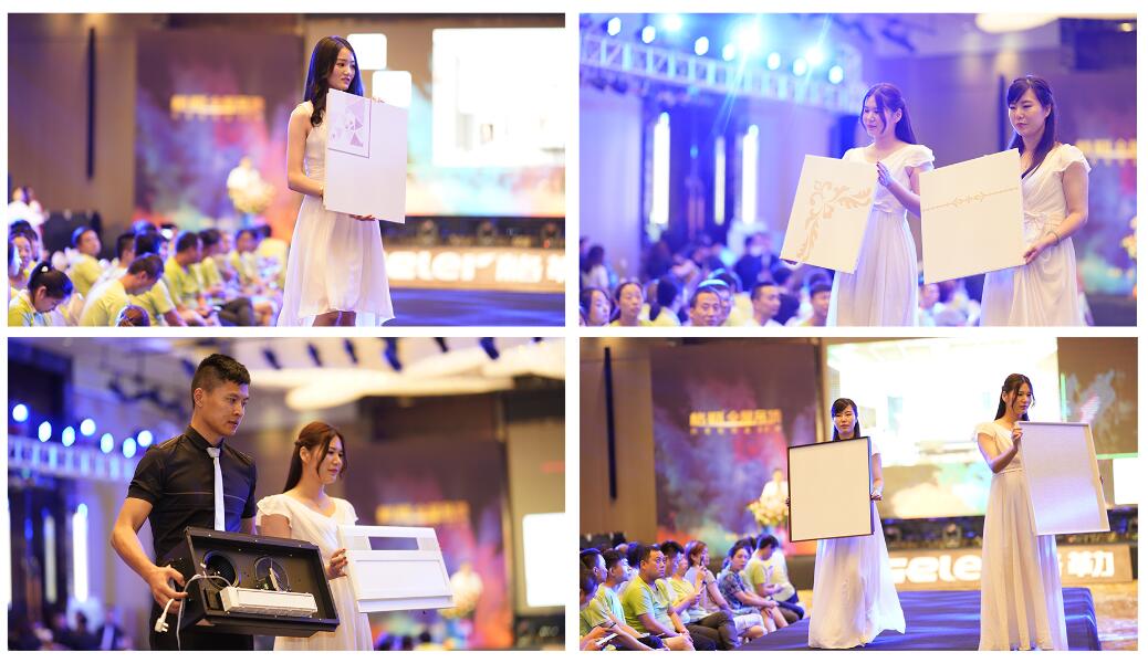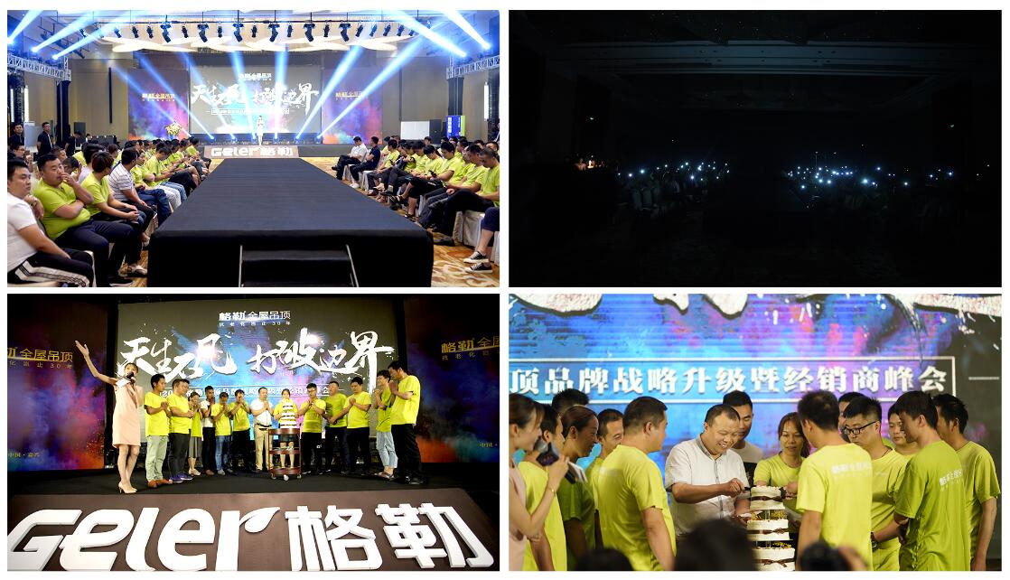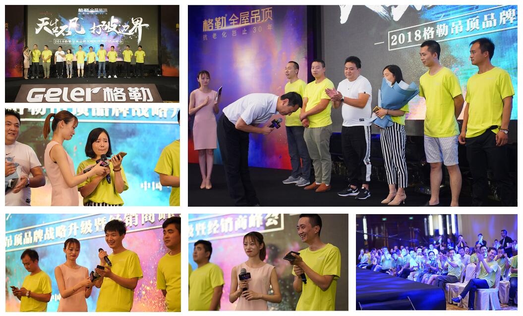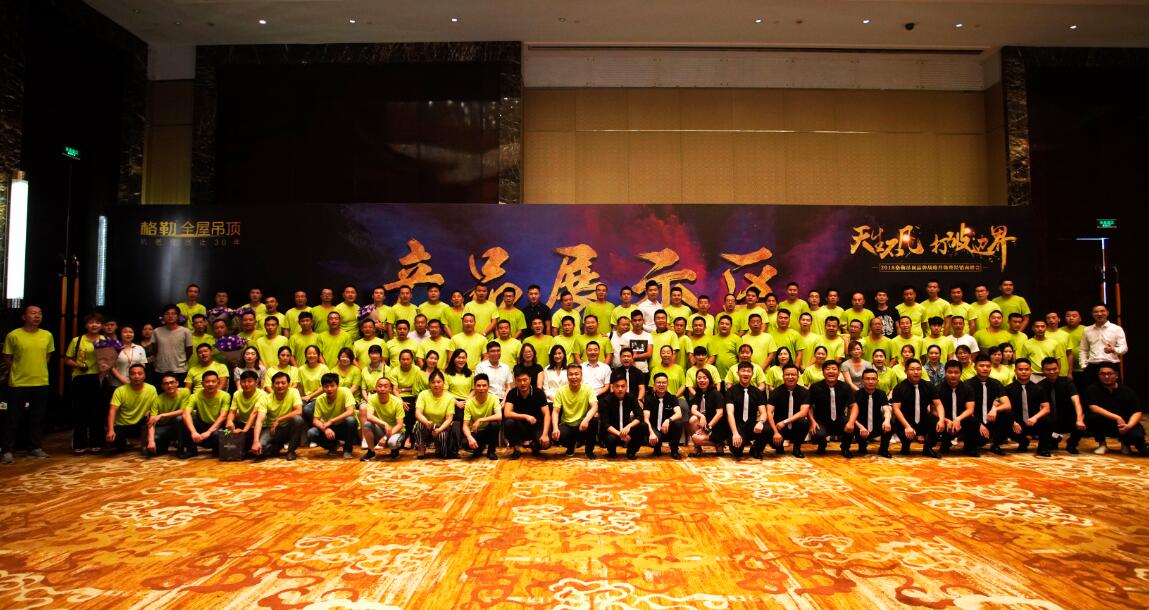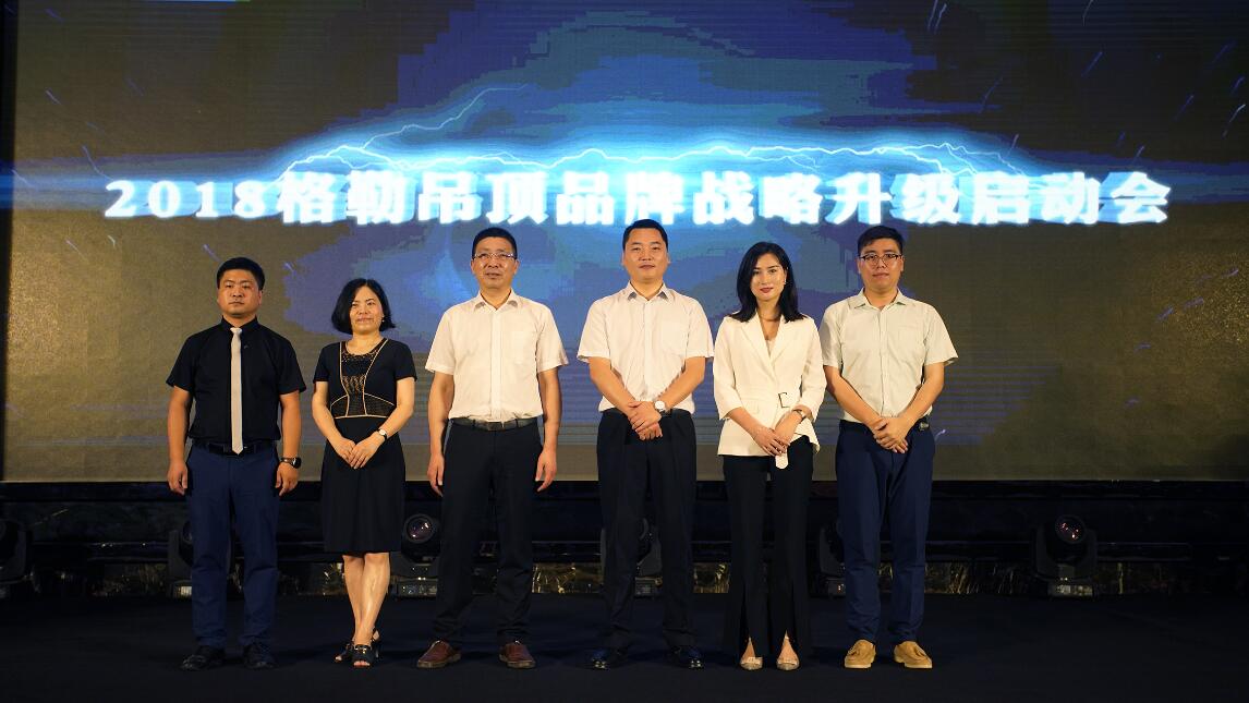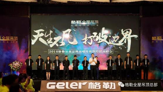 在全体经销商家人的见证下,各位领导上台进行启动仪式,2018格勒吊顶品牌战略升级正式启动,开启了全新的品牌战略。