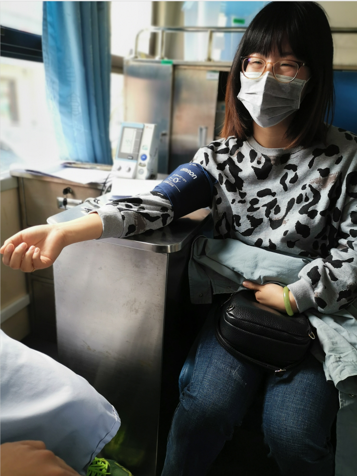 在市中心血站工作人员的引导下,大家认真填写献血登记表、测量血压、抽血化验,经血液检验合格后再开始无偿献血。