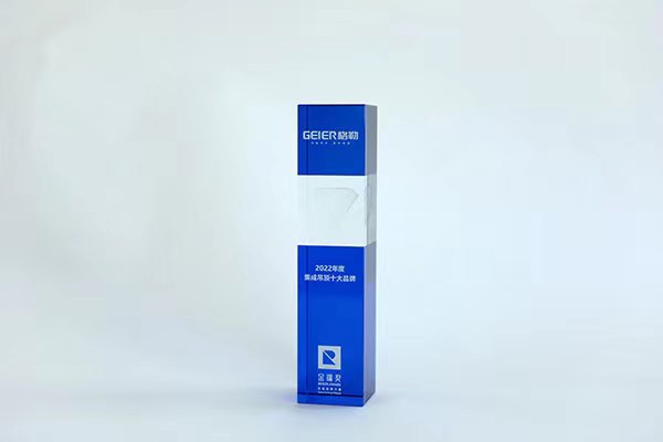 (格勒“2022年度集成吊顶十大品牌”奖杯)