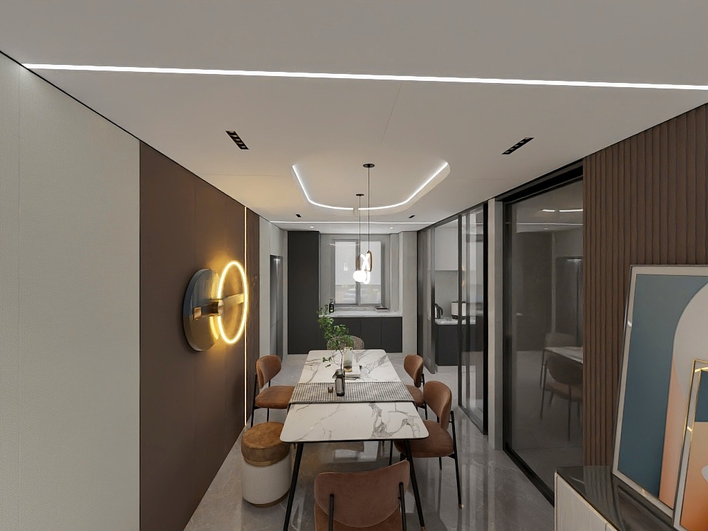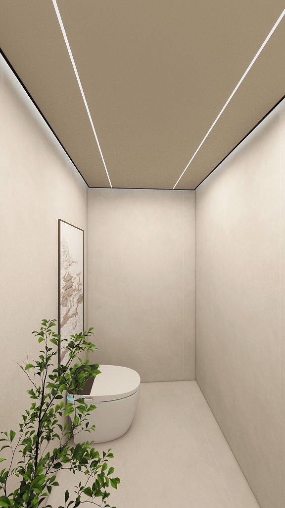 相比于小规格扣板,蜂窝大板无需过多数量的拼接,在视觉上,缝隙减少,空间的整体感和时尚感更强,还有延伸空间视觉感的作用。