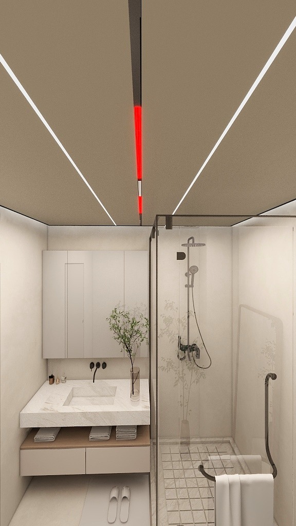 同样的蜂窝大板也可以运用到卫生间中,避免空间显得太过杂乱,形成大气统一的风格效果,高级感迎面而来。